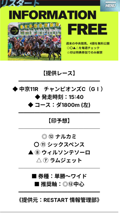 単勝+ワイドでよく当たる無料情報です。